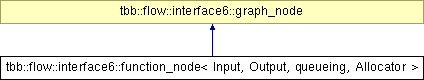 Inheritance diagram for tbb::flow::interface6::function_node< Input, Output, queueing, Allocator >: