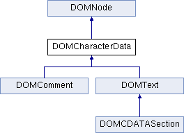 The DOMCharacterData interface extends DOMNode with a set of attributes and methods for accessing character data in the DOM. More...