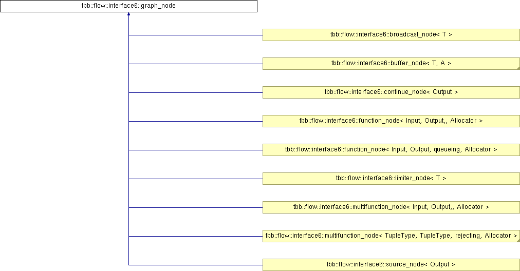 tbb::flow::interface6::broadcast_node< T > tbb::flow::interface6::buffer_node< T, A > tbb::flow::interface6::continue_node< Output > tbb::flow::interface6::function_node< Input, Output,, Allocator > tbb::flow::interface6::function_node< Input, Output, queueing, Allocator > tbb::flow::interface6::limiter_node< T > tbb::flow::interface6::multifunction_node< Input, Output,, Allocator > tbb::flow::interface6::multifunction_node< TupleType, TupleType, rejecting, Allocator > tbb::flow::interface6::source_node< Output > List of all members.